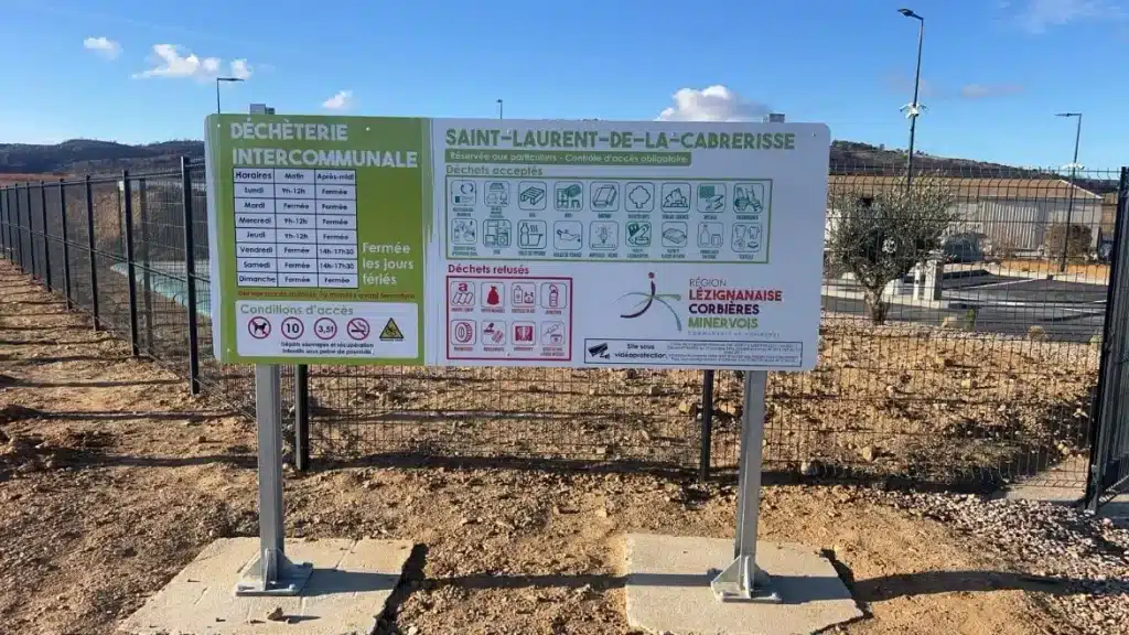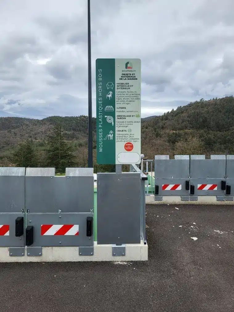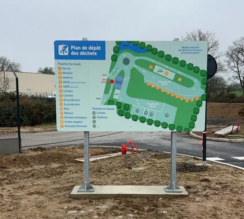 Les panneaux signalétiques sont réalisés en alu-dibon pour les hauts de quais, l’entrée et la sortie de votre déchèterie.