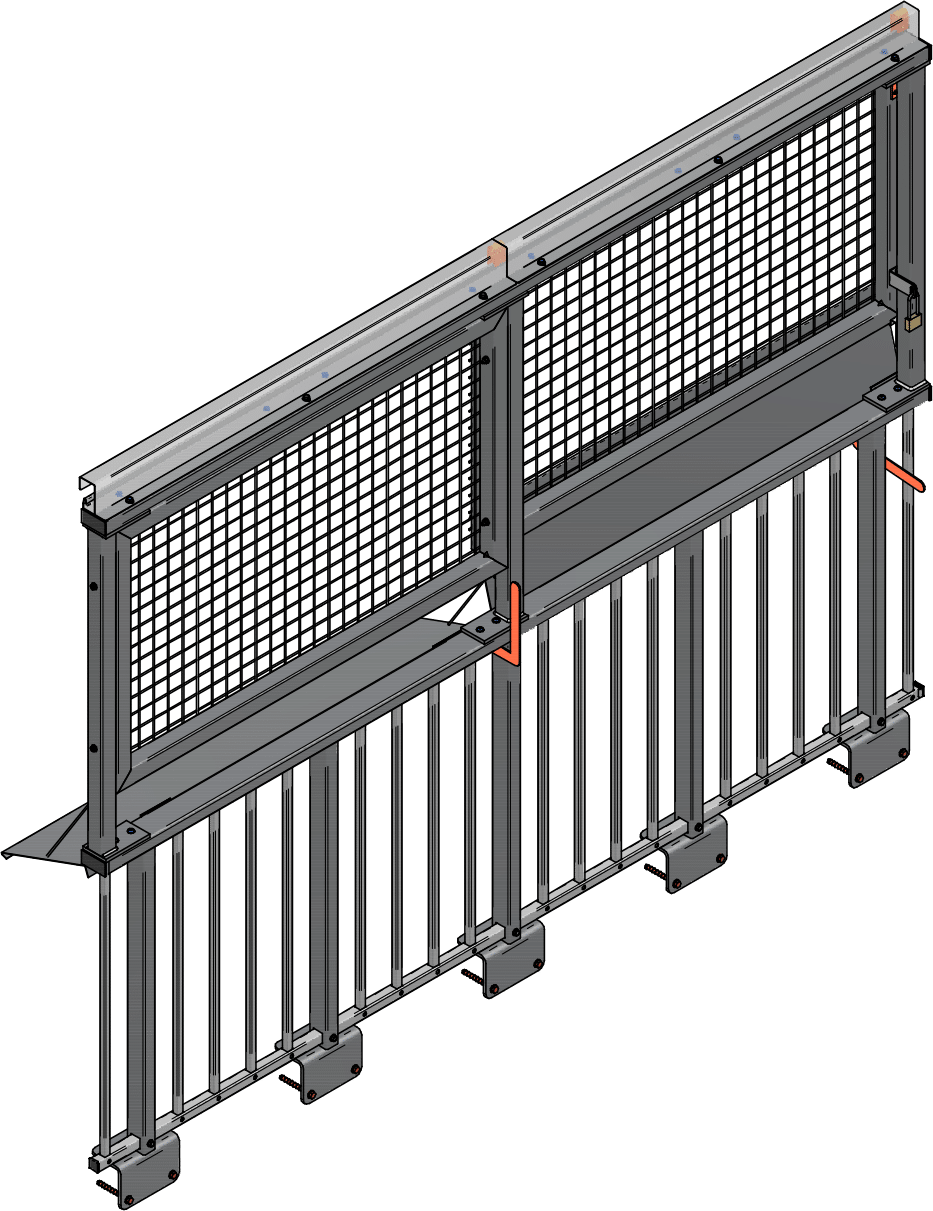 Un système de levier à contrepoids, permet sans effort, à l’aide d’une poignée ergonomique, de basculer la bavette vers le haut ou vers le bas pour obstruer ou ouvrir la zone de déversement sans empiéter le passage.