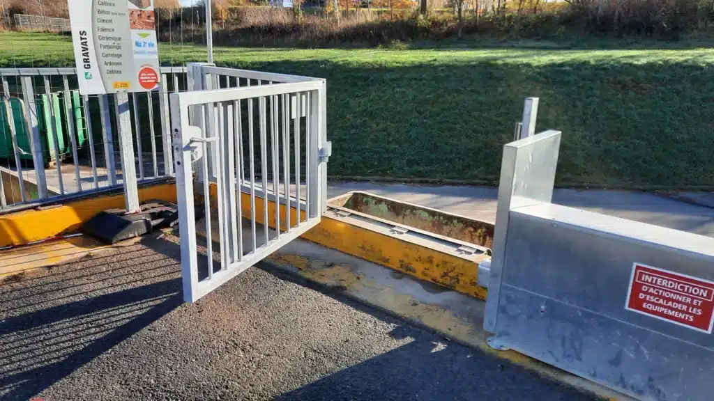 Garde-corps battant permettant de sécuriser le haut de quai des déchetteries.