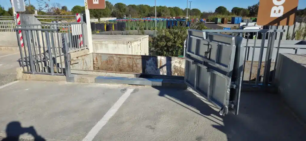 Cette conception hybride permet de sécuriser les quais tout en optimisant les opérations de dépôt et de bennage, sans avoir à réserver un quai exclusivement aux professionnels.