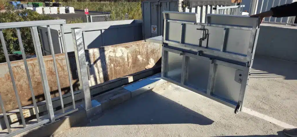 Le TECH TWO est un dispositif de sécurisation de haut de quai spécialement conçu pour les déchetteries.